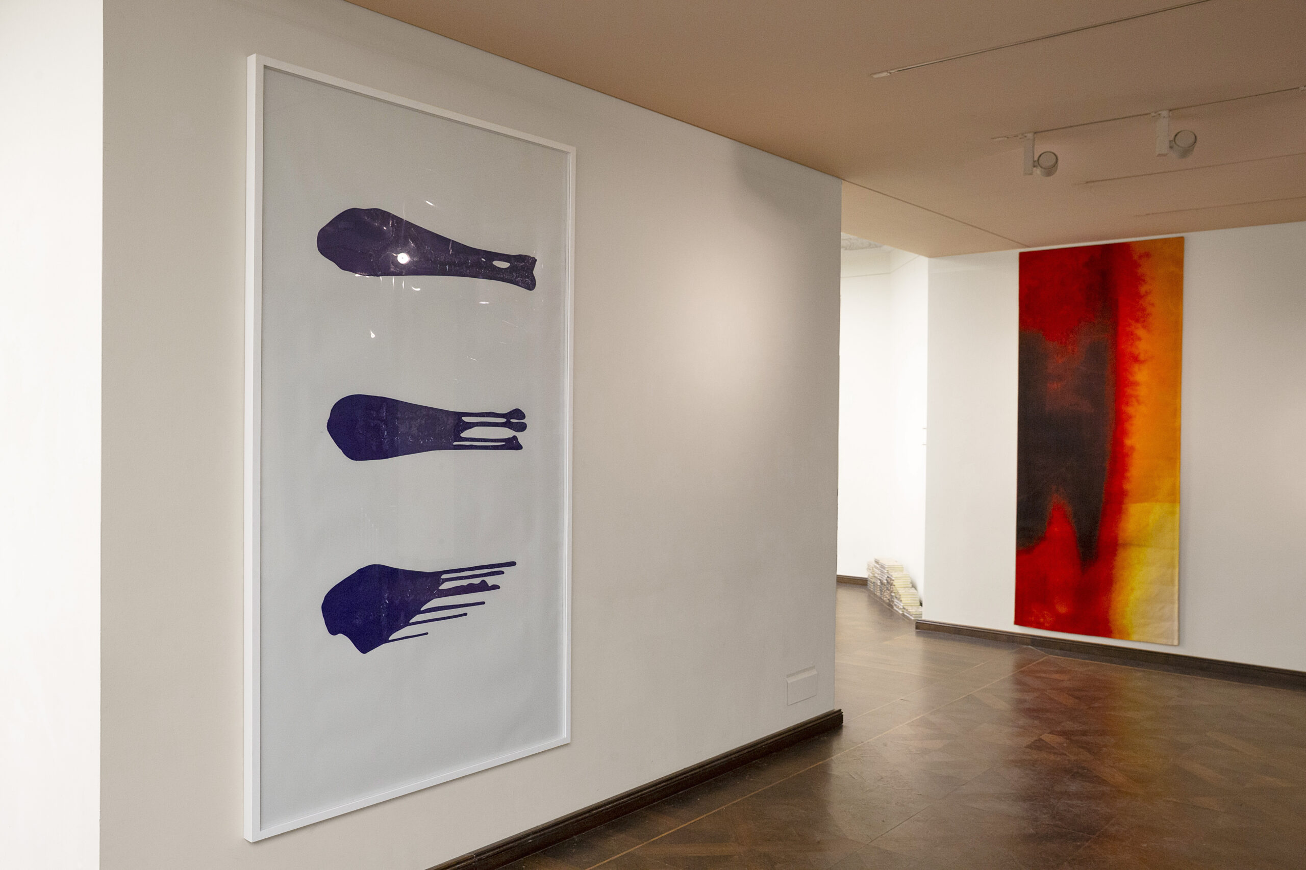 left: Untitled, 2019, 210 x 130 cm, color on opal foil, framed